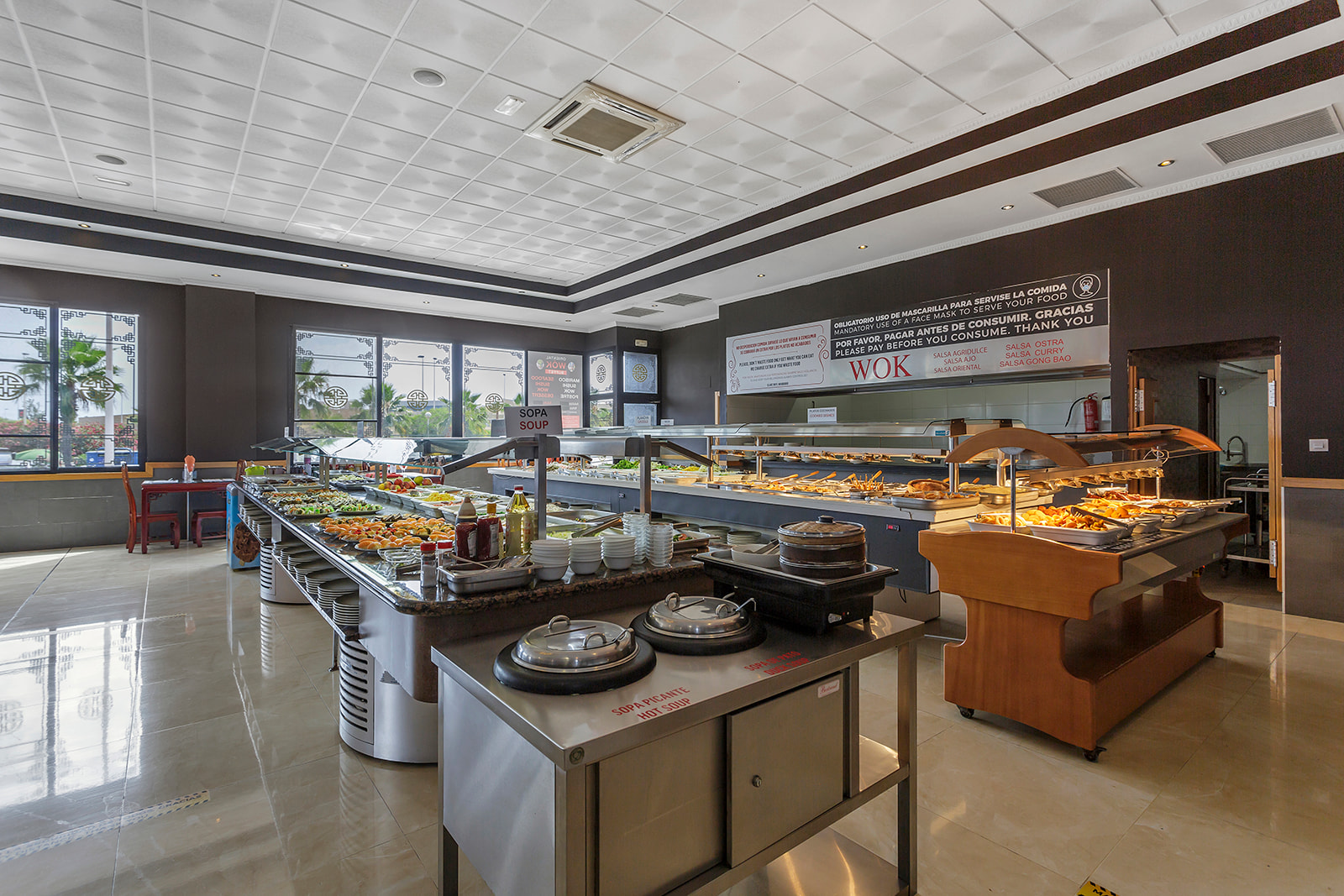 Un buffet especializado en marisco, sushi, wok y postres.